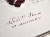 personalisiertes Gästebuch zur Hochzeit mit einem Herz aus Satinrosen in Bordeaux