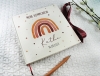 Das robuste Kommunionalbum wird mit viel Liebe und Sorgfalt in reiner Handarbeit individuell gefertigt. Die hochwertige Verarbeitung des fadengebunden Hardcover-Albums sorgt für absolute Langlebigkeit und optimalen Schreibkomfort, während das christliche Motiv des Regenbogens das Thema der Kommunion perfekt unterstreicht.
